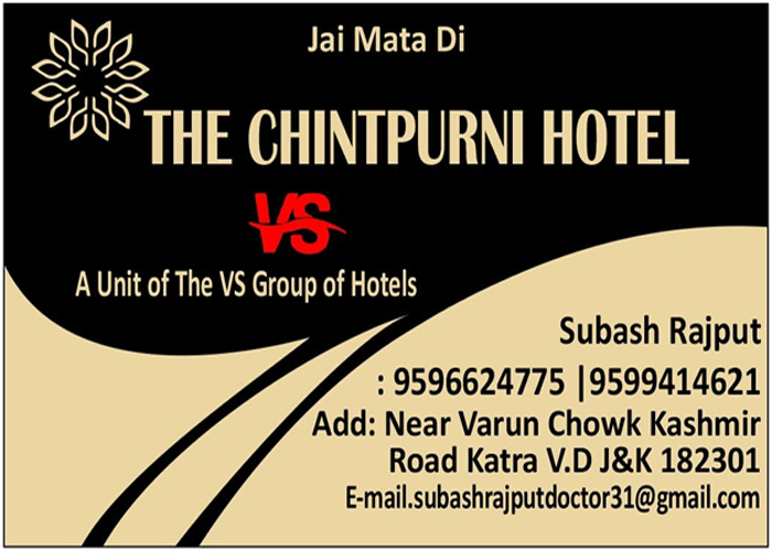 "Welcome to The Chintpurni Hotel (A unit of the vs group of hotel's), your spiritual retreat in the picturesque town of Katra. Nestled in the foothills of the Trikuta Mountains, our hotel offers breathtaking views and effortless access to the revered shrine of Mata Vaishno Devi. Explore the surrounding landscape, dotted with sacred destinations like Shivkhori, Sansar, and Nau Devi Temple. After a day of spiritual exploration, unwind in our elegantly designed rooms, and indulge in warm hospitality. Whether you're a pilgrim or a traveler, Chintpurni Hotel is your haven of comfort, serenity, and spiritual connection."