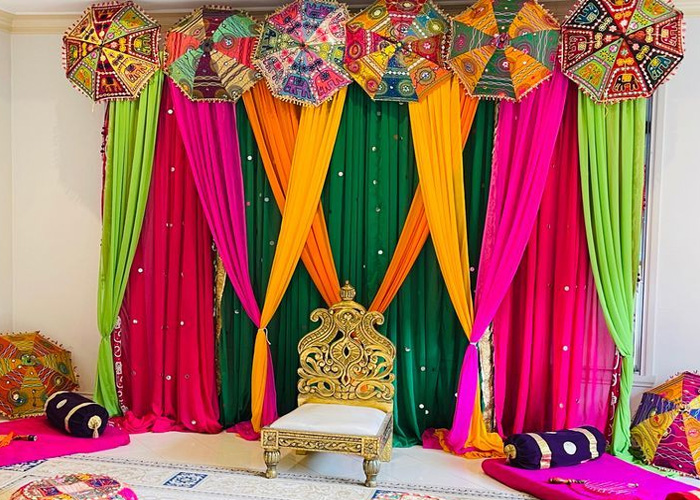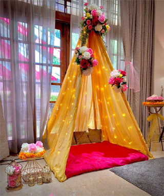 Celebrate your Mehendi with vibrant colors, floral beauty, and joyful vibes—blending tradition, fun, and elegance in every corner.